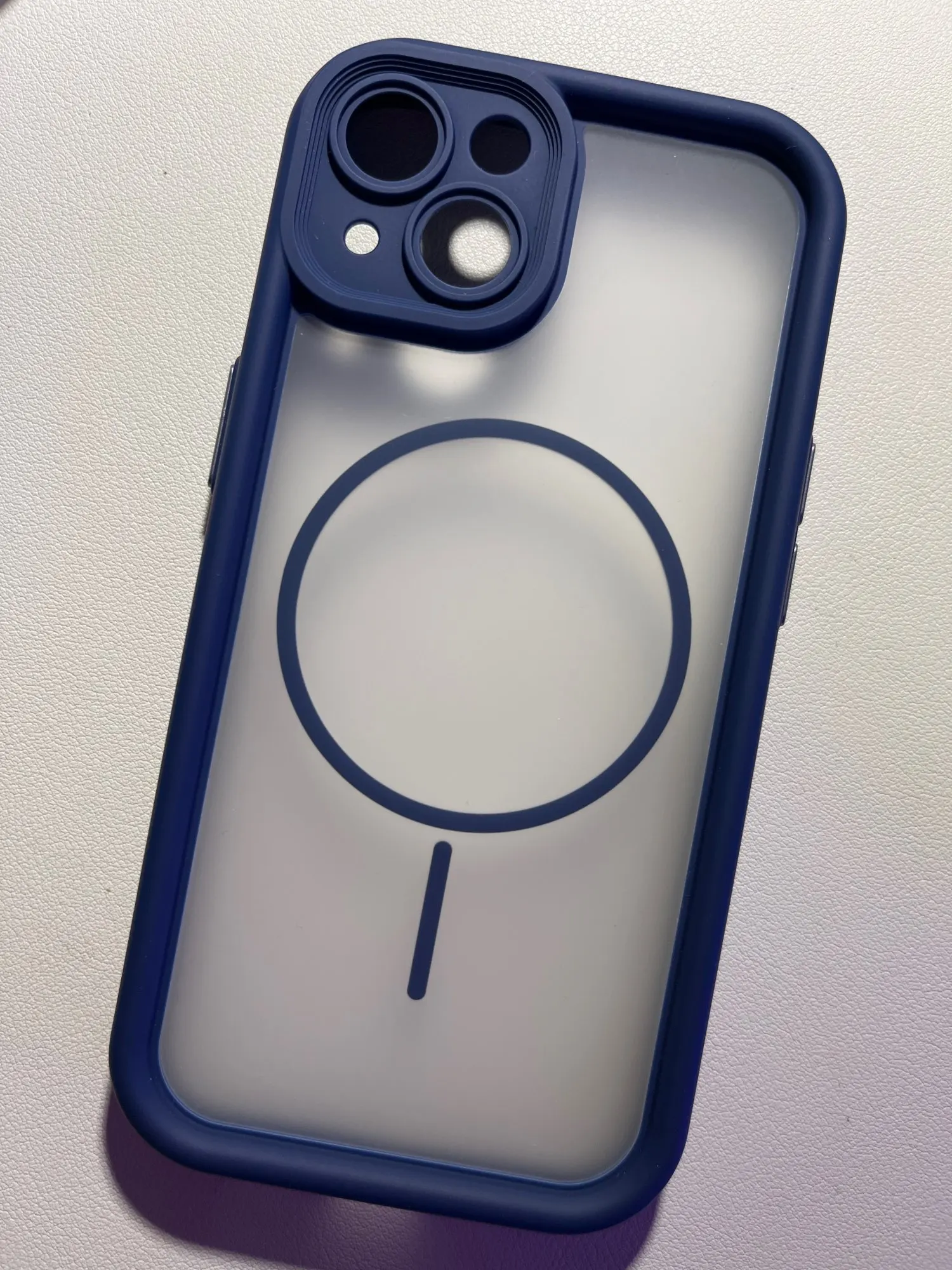 Two phone cases, one blue and one pink, Luxury Matte Transparent MagSafe iPhone Case Magnetic Bumper Cover