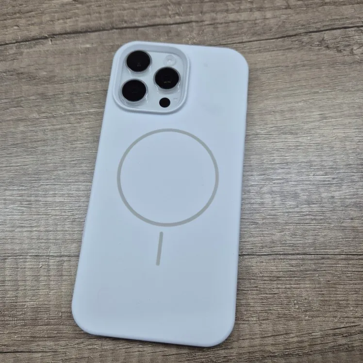 White Luxury Skin Feel Magnetic Magsafe Phone Case for iPhone 12-17 Pro Max Plus Wireless Charger Cover.
