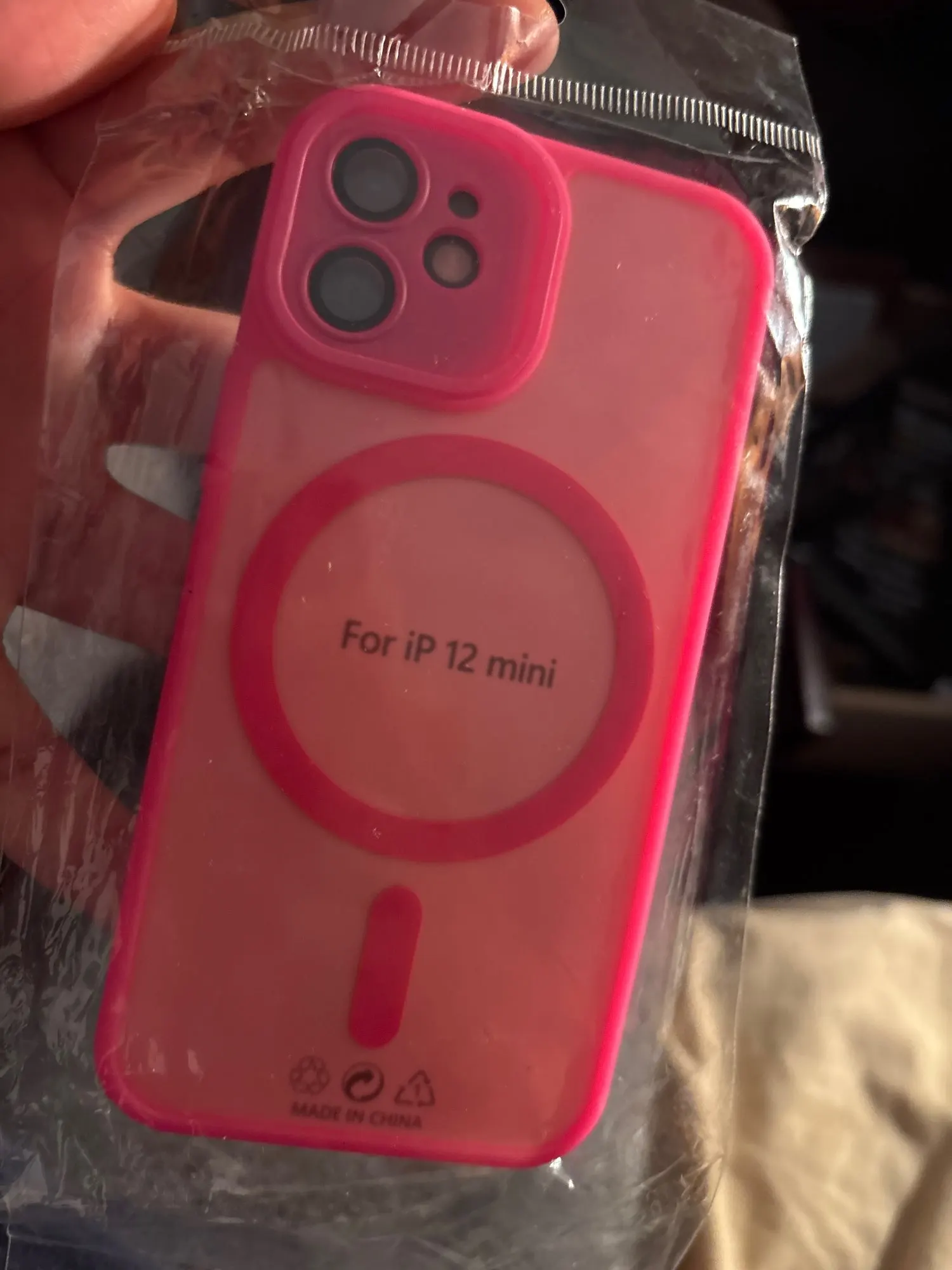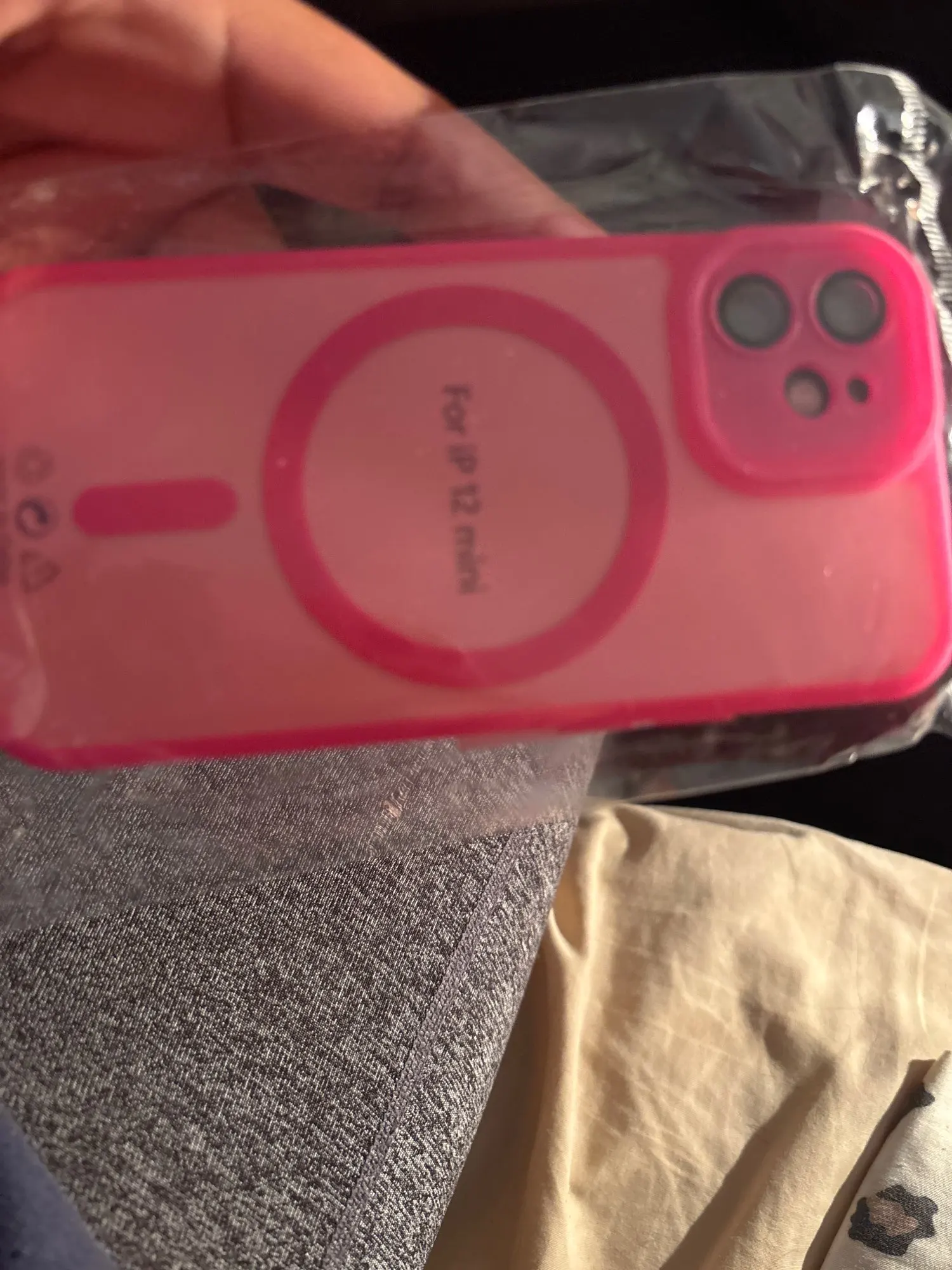 Person holding a Matte magnetic iPhone case compatible with Magsafe wireless charging with a white card in front of the camera lens on a gray background